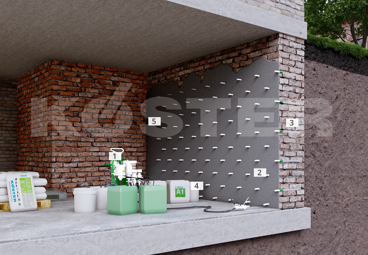 O KÖSTER Injection Gel G4 é injetado em várias fases até que uma resistência à pressão seja alcançada. Em seguida, os orifícios do packer são preenchidos com KÖSTER KB-Fix 5. Para um design de superfície decorativo e funcional, os KÖSTER Restoration Plasters podem ser aplicados sobre a KÖSTER Injection Barrier.