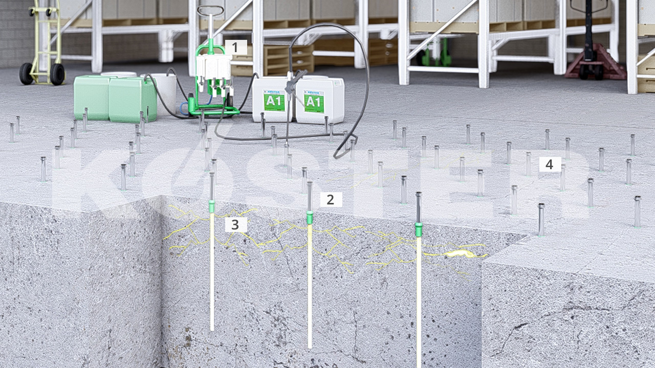 Embora a injeção de concreto não seja a injeção mais comumente realizada, ela pertence aos campos de aplicação dos géis acrílicos. Mais uma vez, a baixa viscosidade do material e a cura segura sem afetar o reforço de aço, fazem da injeção de concreto um campo de aplicação especializado para os KÖSTER Injection Gels.