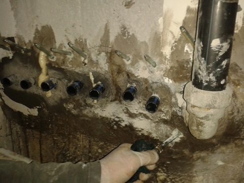 Problem prodora vode koja se pojavljuje uz plastičnu cijev uspješno je riješen sa injektiranjem PU pjene Köster IN 7, koja u dodiru s vodom volumenski ekspandira do 30 puta. Prije injektiranja, prodor je dodatno obrađen na način na je odšteman dio oko cijevi i utisnuta je trajnoplastična poliolefinska pasta za brtvljenje KB-Flex 200 (do dubine 8cm), koja je na kraju zatvorena sa brzoveznim mortom KB-Fix 5 (vrijeme vezanja 5 min.). Pukotine su prethodno zatvorene sa brzoveznim cementnom (KB-Fix 5) te zainjektiranje istom smolom (IN 7) uz upotrebu pakera za injektiranje (Superpacker 13x115mm) te pumpe za injektiranje.