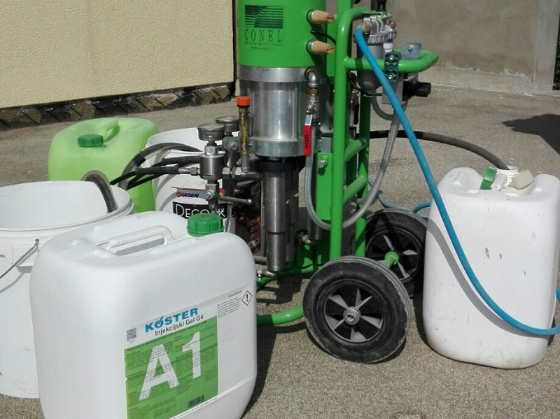 Izvedba horizontalnog prekida kapilarne vlage 3K akrilnim elastičnim gelom KÖSTER Injekcijski GEL G4.