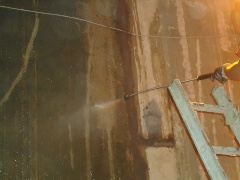 Water jetting the surface in order to remove dust and lose particles