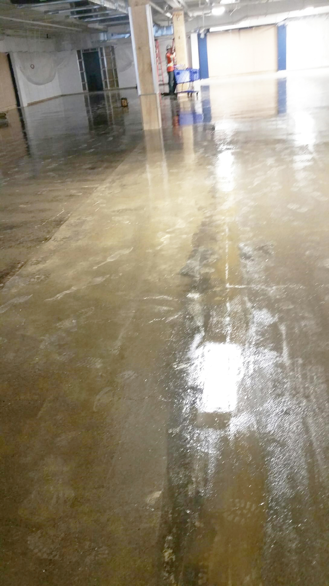 Installation Details: Existing glue had to be removed from the surface using a grinder. The concrete was then shot blasted to a ICRI CSP 3 profile. KOSTER VAP I® 2000 was then installed and followed by KOSTER VAP I® 06 Primer, KOSTER SC, and KOSTER SL Premium.